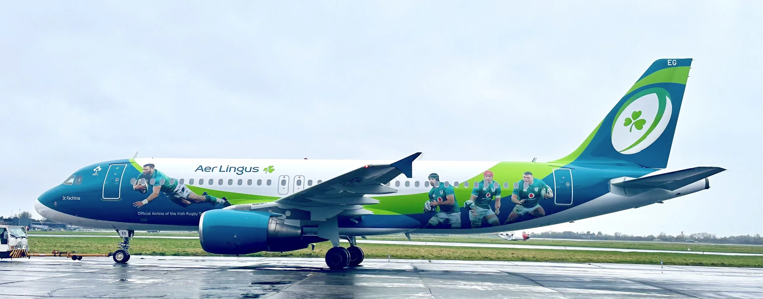 Aer Lingus partners with the IRFU as the ‘official airline of the Irish rugby team’ and the aircraft livery has become an iconic expression of that partnership, flying the Ireland Rugby Team to all of their away games.